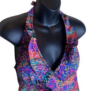 Spanx assets women’s medium colorful glamour ruffle tankini halter top slimming