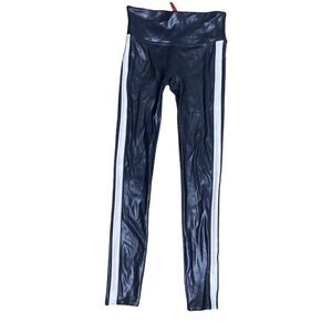 Spanx faux leather side stripe leggings small moto biker pants vegan edgy