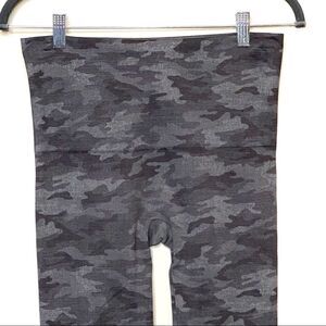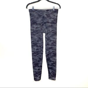 Spanx look at me now seamless gray camouflage leggings size L. High waisted. Very good condition. 94% nylon 6% elastane. Waist 14” Rise 10” Inseam 27”.