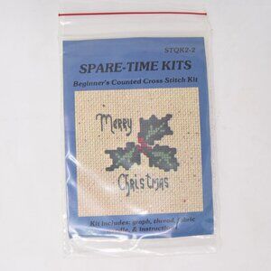 Spare-Time Kits Merry Christmas STQK2-2 beginner's counted cross stitch kit with graph, thread, fabric, needle, and instructions