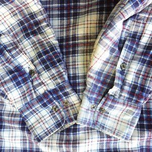 SpareTime Vintage Blue Plaid Flannel Shacket Field Navy Quilted Lining L Large