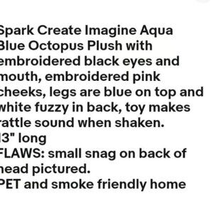 Spark Create Imagine Aqua Blue White Octopus Rattle Plush Stuffed Animal 13", Snag on back of head which is pictured. The legs are fuzzy on the back.