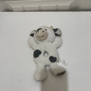 Spark Create Imagine Soft Plush Cow Rattle Gray & White Smiley Happy Face 8"
