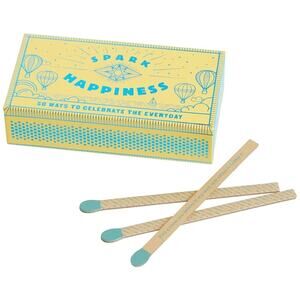 Happiness in a box: Full of inspiring ideas for sharing and cultivating moments of joy, appreciating bright spots, and celebrating the everyday. This petite and sweet box of prompts makes an excellent gift. It's the gift of inspiration, with prompts that will inspire a joyful outlook and everyday wonder- making it a great way to affordably give the gift of a new perspective and fresh discoveries. Includes 50 faux matchsticks with printed prompts.