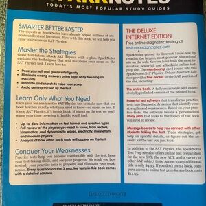 Prepare for your SAT Physics test with the SparkNotes Study Guide. Featuring an orange and blue cover, this guide offers complete practice tests and proven strategies to help you succeed.