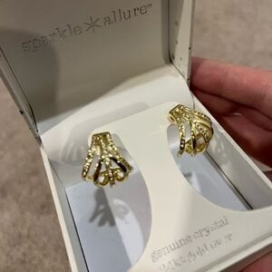 Sparkle Allure Crystal 24K Gold Over Brass Hoop Earrings