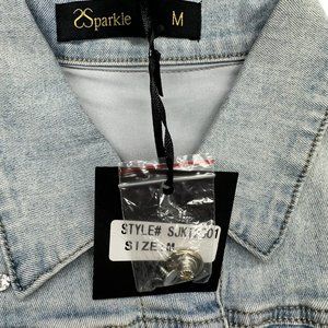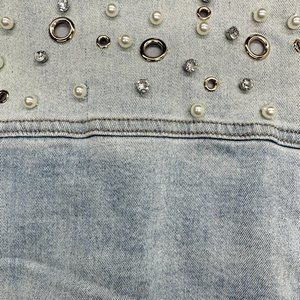 Sparkle Denim Pearl and Grommet Denim Jacket (M)