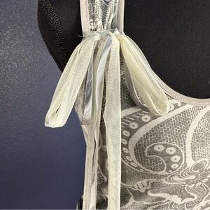 Sparkle & Fade Cream & Gray Tie Front Tank Top, Size Small