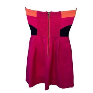 Sparkle & Fade Dress Womens Size Small Pink Mini Strapless Colorblock Smocked