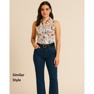 Sparkle & Fade Floral Tank Top Small Collared Button Down Cut Out Padded
