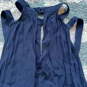 Hidden zipper up the back as well as two buttons at the back of the neck. Worn only once for an event!
