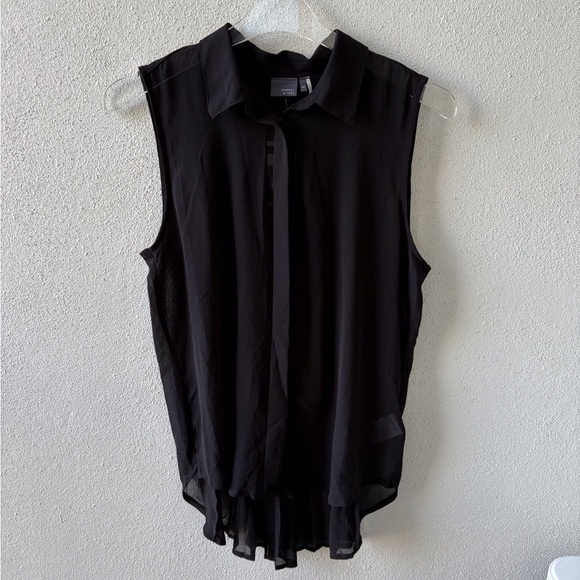 Sparkle & Fade Sheer Sleeveless Button up Collared Pleated Black Top Hi Low Hem Goth