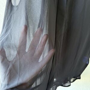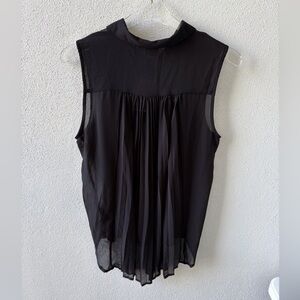Sparkle & Fade Sheer Sleeveless Button up Pleated Black Top Hi Low Hem Goth