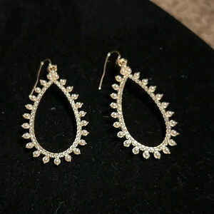 Fake diamond accents adorn these gold hoop earrings for pierced ears.