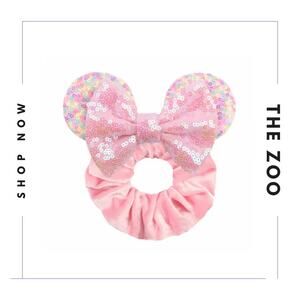 Add a touch of sparkle to your hair with our Sparkly Pink Mouse Ears Scrunchie. Perfect for those who love a bit of shine and magic, this scrunchie brings a fun and glamorous vibe to any hairstyle.