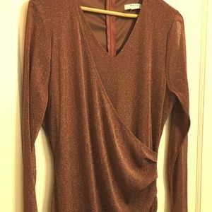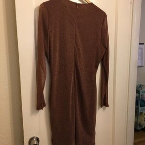Gold lame dress by FavLux, worn only once, good as new. I'm selling it because I'm in a shorter body and the sleeves and hem line are a little long to be flattering on me. This is a mini dress but on me it comes off as midi (again, I'm of short stature).