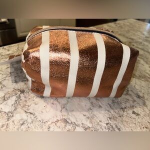 New with tags. Sparkle Striped metallic Rose Gold & white Travel Bag.
