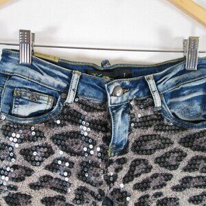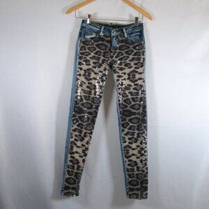 Sparkle Womens Blue Super Skinny Jeans Leopard Print & Sequin Front Size 1 NWT