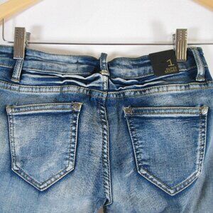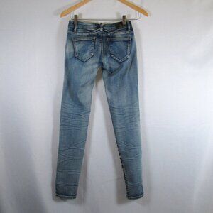 Sparkle Juniors Blue Super Skinny Jeans Leopard Print & Sequin Front Size 1 NWT Great Condition. 5 pocket, zipper fly, button waist. Plane back pockets.