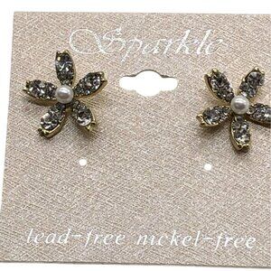Sparkle Womens Floral Crystal Pearl Post Earrings Lead & Nickel-Free Rhinestones