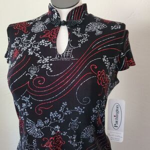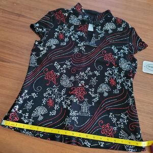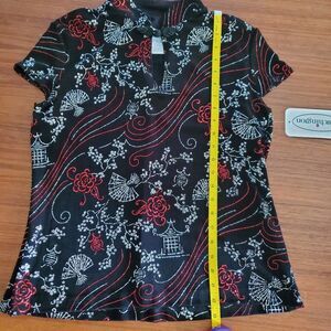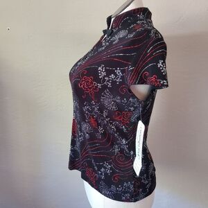 Top still has tag on it. Festive top, perfect for up coming holidays! Has stretch. Cute with denim or dress it up an evening out!