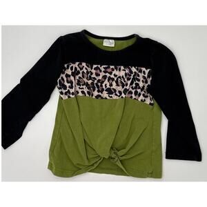 Both tops feature a stylish color block design with black sleeves, olive green base, and leopard print accent. Long sleeve, soft fabric, and easy pullover fit make this set perfect for casual wear, family photos, or special outings.