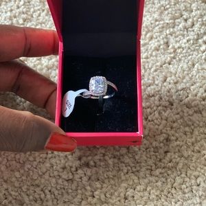 Absolutely stunning and unbelievably sparkly 8ct AAA CZ that simulates a diamond surrounded by smaller stones in a beautiful silver plated setting. Don’t miss out, this is the only one available! Size 7 See my other listings :)