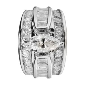Sparkling 3 rows silver Ziron ring ,beautiful costume jewelry ,use proper care