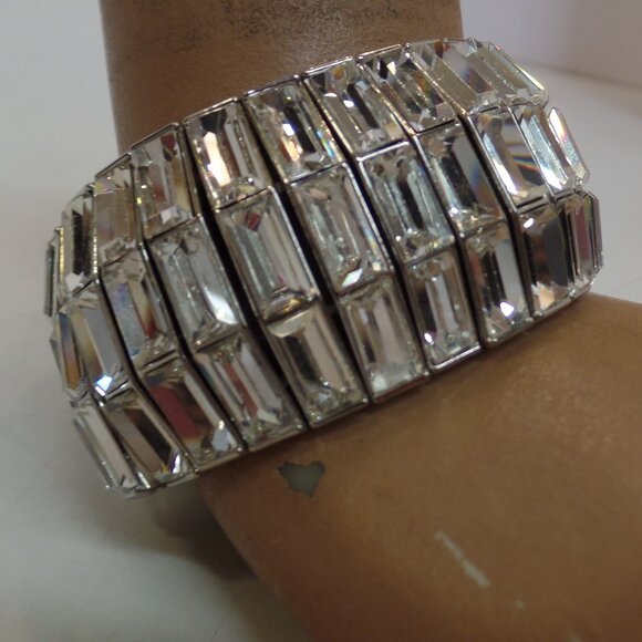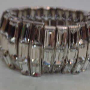 Sparkling Bold Elastic Bracelet Apx 1.5" Wide & Suited for 7" Wrist or Smaller Item is unbranded. Item is pre owned and there are no issues. Was worn one time by me. Please view the pictures carefully for details, colors, measurements, brand and condition as they are part of the item description. Sometimes I use flash to capture details as well. This will come carefully packaged for shipping. Comes from a smoke free, animal free environment. Please check out our other items. We specialize in Beautiful Jewelry, Purses, Shoes & Home Decor. 1000 + Listings. And if you find several items you like, Message me so I can give you a better rate on shipping. Questions? Ask us. No problem.