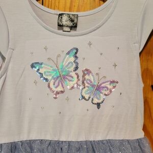 Sparkling Butterfly Kids Dress in Light Blue