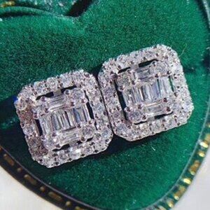 "Sparkling Clear CZ Unique Design Stud Earrings for Women, MLNN1066