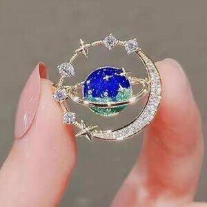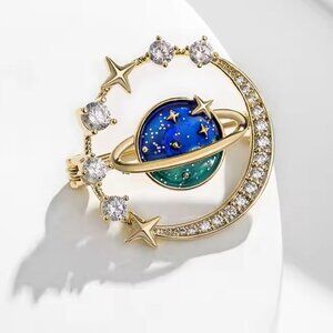 🌺 🌺 🌺 Sparkling Cosmic Planet Brooch Pin with Elegant Rhinestones