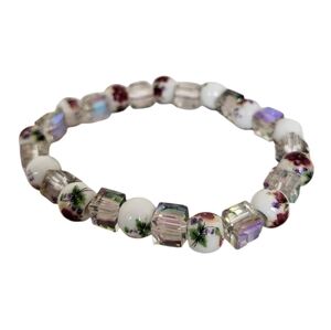 Featuring delicate ceramic beads adorned with romantic peony blooms, this bracelet is accented with sparkling transparent crystal cubes for a light-catching finish.