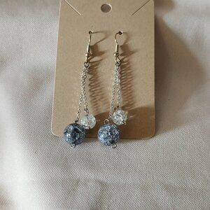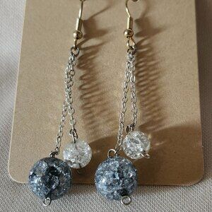 Double the charm, double the shine! These sterling silver fishhook earrings feature delicate double dangle chains, adorned with sparkling crackle silver and clear glass beads. Light-catching, modern, and effortlessly elegant.