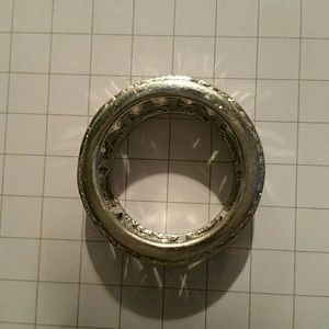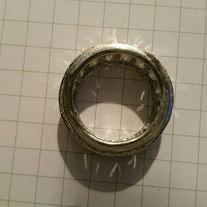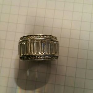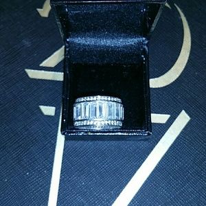 Triple AAA CZ'S set in silver plating. This rings has some fading on the bottom. Please see Pic#4. It's hard to detect and looks worst in the picture than on the ring in my opinion. But please review pics closely and consider that it has fading before purchasing.