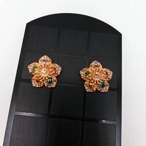 Sparkling Flower Stud Earrings Cubic Zirconia Crystal Alloy Post Earrings NEW
