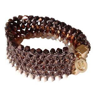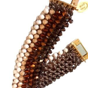 Sparkling Gold Cake Crystal Mesh Bead Bracelet Brown Bronze Reversible 6.75" Mag