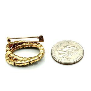 Sparkling Green Interlocking Rings Brooch, Vintage Double Ovals with Prong Set Crystals, Minimalist Glam in Gold Tone, Lapel or Scarf Pin