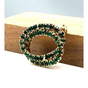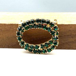 Sparkling Green Interlocking Rings Brooch, Vintage Double Ovals with Prong Set C