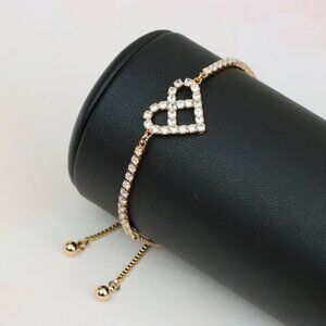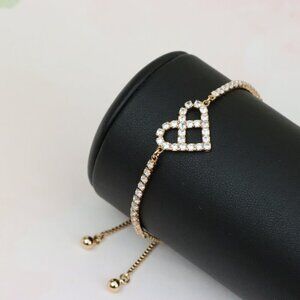 Elegant rose gold bracelet featuring a charming heart design adorned with shimmering stones, perfect for adding a romantic touch to your style.