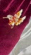 Dazzling hummingbird brooch embellished with shimmering crystals. Features vibrant red, gold, and cream hues. A chic accessory for any ensemble.