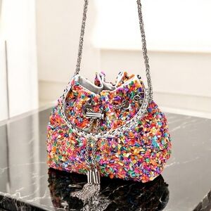 🆕️Sparkling Multicolor Stone & Rhinestone Evening Clutch Colorful Bucket Bag ✨