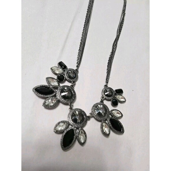 Sparkling Necklace Black and Silvertone With Crystals-Look Party Cruise Classic