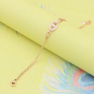 "Sparkling Oval Charm Rose Gold Bracelet with Adjustable Chain, XPBL0829