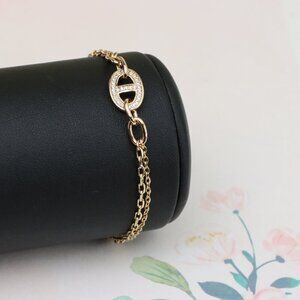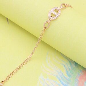 ✅ Elegant dual-chain design with crystal-studded oval charm