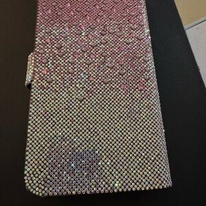 Eye-catching pink rhinestone phone wallet case with snap closure. Designed to protect and style your device while offering cardholder functionality. Shimmering pink finish adds a glamorous touch to everyday use. New! Thank you for looking!