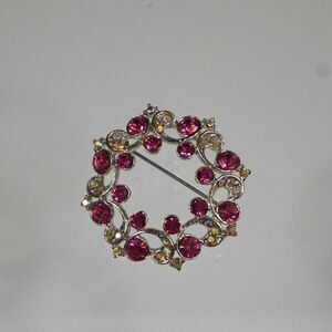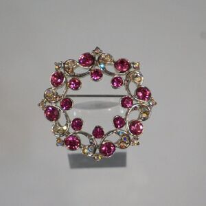 Sparkling Pink Rhinestones Brooch Silver Tone Metal