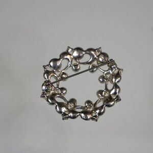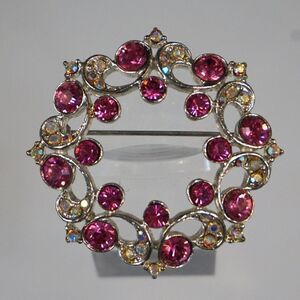 Sparkling Pink Rhinestones Brooch Silver Tone Metal 1.75 inch
