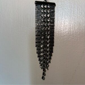Sparkling rhinestone and chain pierced earrings. Make a statement with these beautiful earrings. 3 1/2” long and 1” wide. Perfect with rhinestone fringe mini skirt (listed separately). When you want to add some glittering fun to your night out. Great condition.