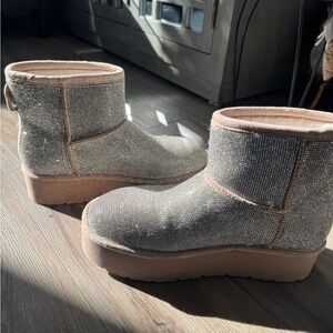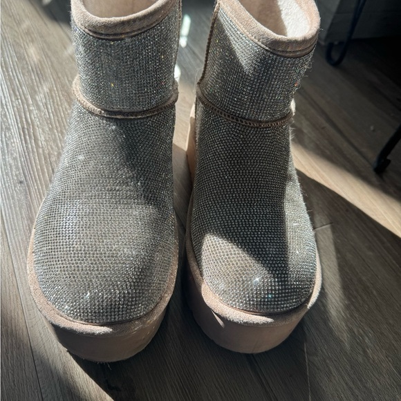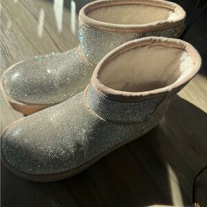 Pre loved Madden girl tan Shimmering boots with rhinestones. Perfect for adding sparkle to any outfit. Size 10